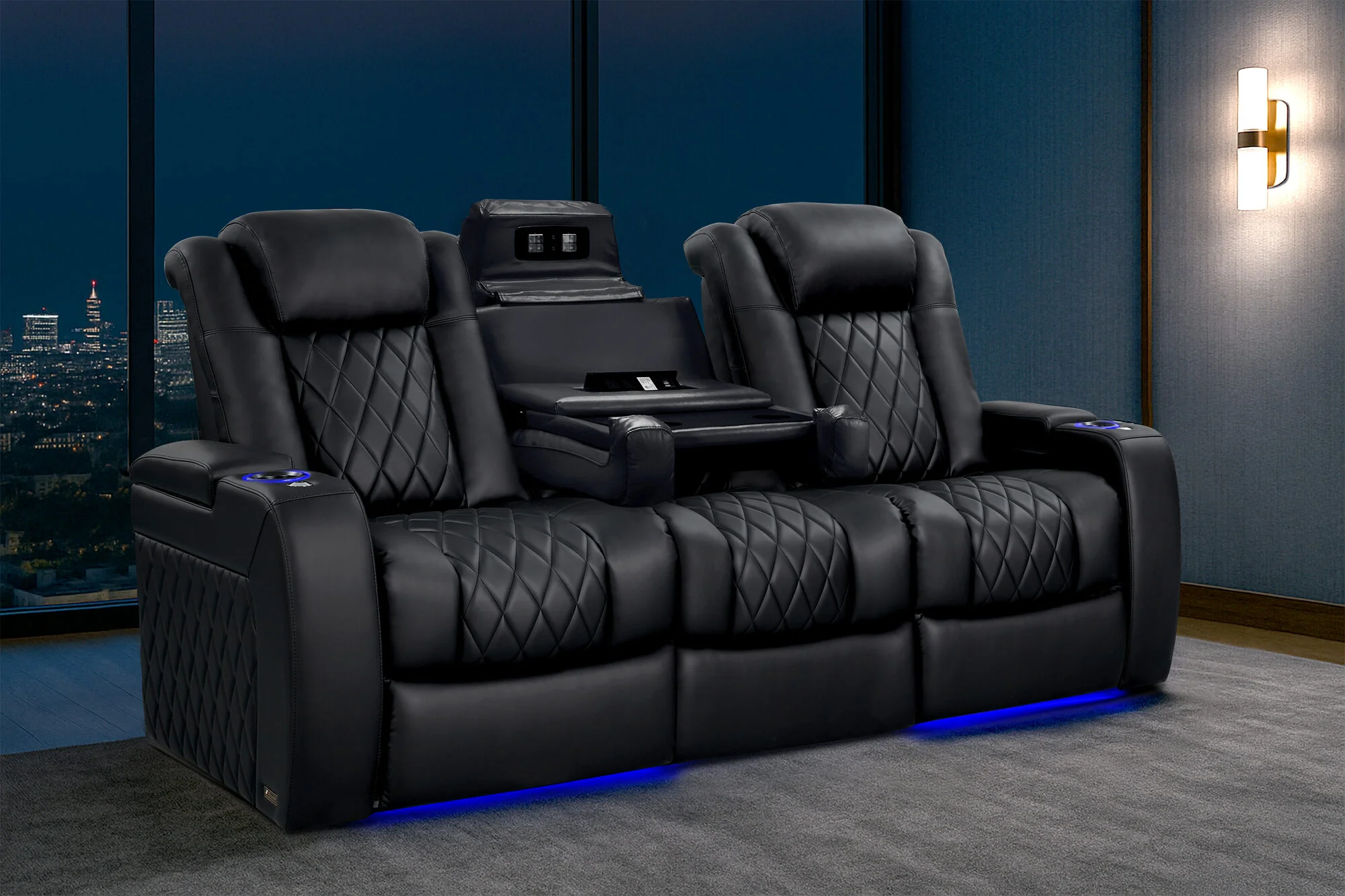 The enjoyment of these massage mode is heightened by a heated seating cushion, soft-to-the-touch Italian nappa 11,000 top grain leather, and ultimate comfort resiliency. Relaxation and the home theater seating experience take on a new blissful meaning with the New Tuscany Heat & Massage. Curl up on the impossibly soft, heated leather cushions, and let this home theater seat that’s the definition of luxury take you through countless movie nights with friends and family.