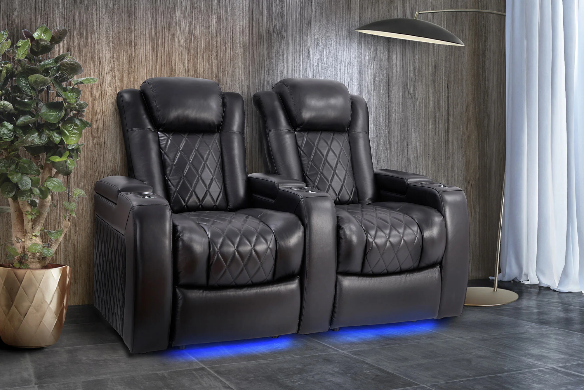 Introducing the compact version of our Best-Selling Tuscany Home Theater Seating! The new Tuscany Slim is equipped with premium features and allows you to conserve space with its 34” width frame. Designed for unmatched relaxation, this premium recliner is crafted with new imported Italian nappa 11,000 top grain leather on all seating surfaces, offering a smooth and elegant touch. Enjoy immersive movie nights with new RGB cup holders with ambient base lighting, and a motorized reclining system that lets you find your perfect seating position effortlessly. The newly upgraded Tuscany now features deeper hidden arm storage, perfect for keeping your accessories close at hand. Plus, an air piston-assisted storage lid ensures smooth and safe operation. Our tactile button control system replaces traditional soft-touch buttons, allowing you to activate all functions simultaneously for an enhanced experience.